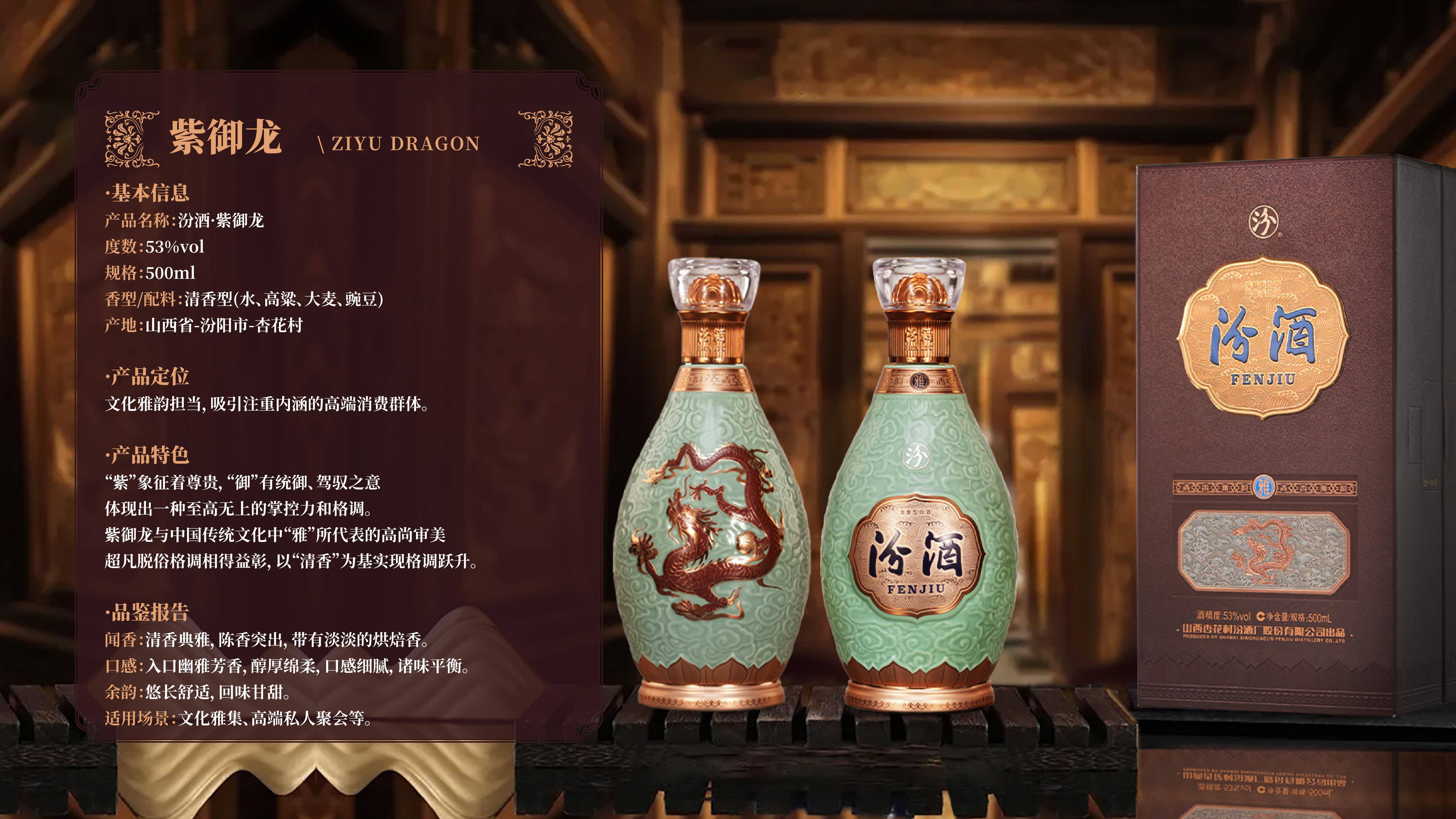 据悉,本次开业的汾酒体验中心以“龙御汾香 文明破晓”为核心主题,全方位展示汾酒战略高端旗舰——中国龙系列产品,将文化展示、酒饮品鉴、沉浸式体验融为一体,让每一位到访者都能沉浸式感受千年汾香与华夏龙图腾的碰撞。体验中心内,汾酒·中国龙系列全品亮相,水晶龙、青花龙、紫御龙、黄金龙四款产品各具特色,涵盖不同高端消费场景,满足商务宴请、珍藏纪念、文化雅集等多元需求。